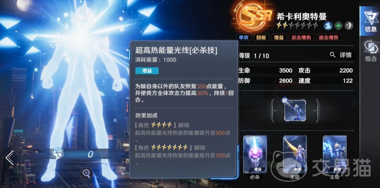 闪耀赛罗奥特曼——全游戏唯一达成群体250%倍率与单体理想状态600%倍率的角色,兼具AOE清图效率与BOSS战压制力。其技能机制无明显短板,可作为终极阵容核心,但受限于极高的获取门槛与培养消耗,主要适配资源充裕玩家。