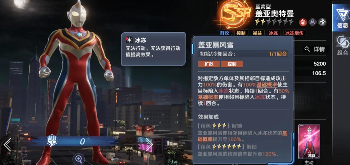 盖亚至高型奥特曼——定位为控制型辅助,普攻与技能均可触发敌方单位限制效果,首回合即可压制多个敌方目标,在PVP对抗与机制类高难挑战中表现优异。