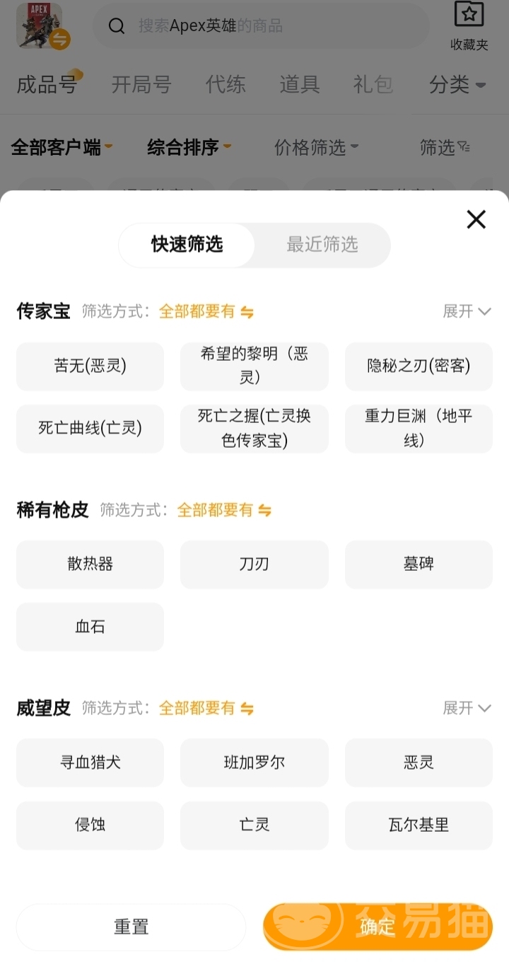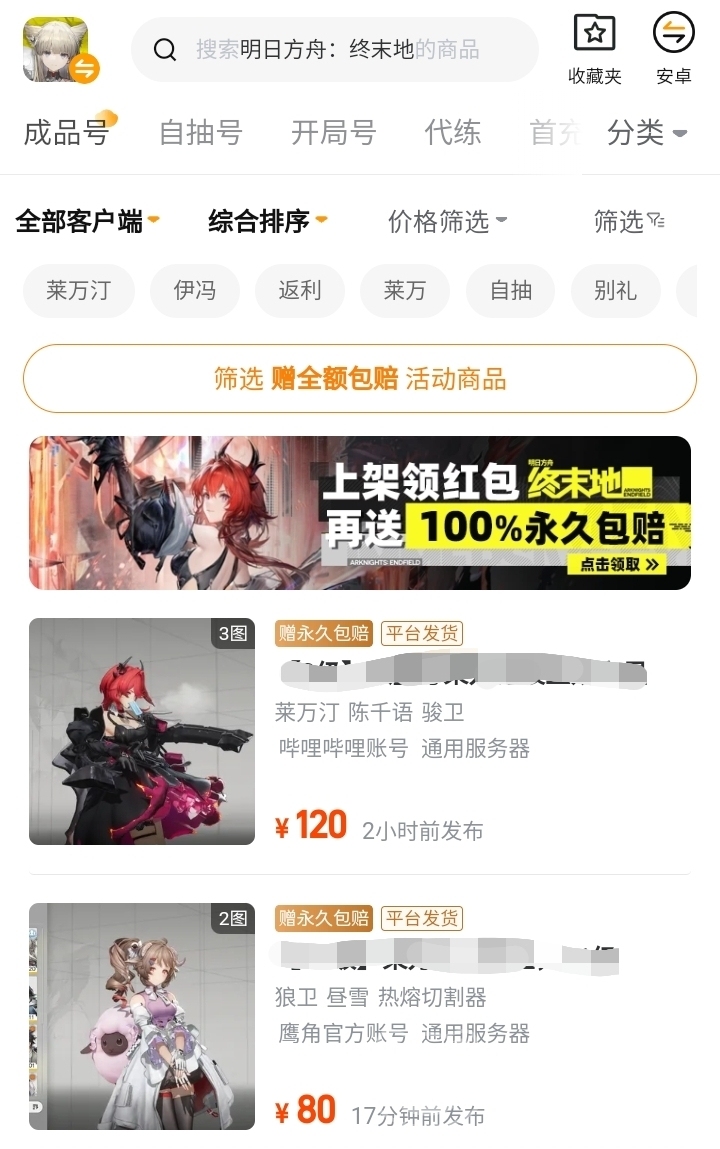 之所以很多玩家都选择使用交易猫购号,是因为平台上有非常丰富的账号内容供你挑选。毕竟很多人买号之前都会货比三家,可以在软件上通过价格区间筛选功能,选出心理价位的高性价比商品。还可以单选含有某个装备或者指定的角色的账号,根据价格顺序排列,逛起来非常有条理性,更加方便你寻得自己的心仪号。