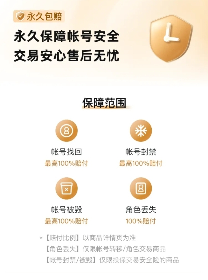 交易猫平台更是由阿里巴巴灵犀互娱参与建设的,也是当前行业里唯一提供永久包赔机制的平台。安心购服务包含的永久包赔,如果交易完成之后的账号在约定的周期被冻结、恶意找回等,经过客服核实,就能启动最高全额赔付的补偿,稳稳的守护大家的交易安全。