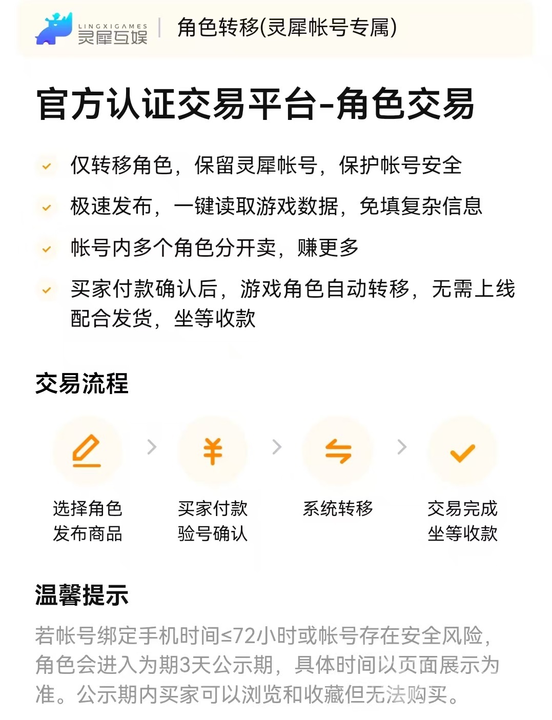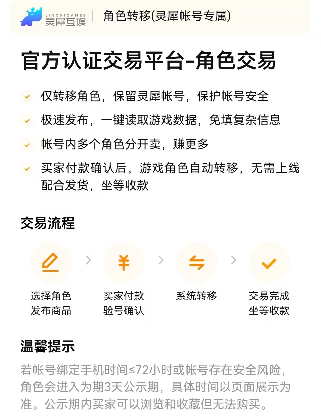 账号转移的优势在于无需等待卖家配合换绑,确认购买后直接可以将账号下面的所有的角色和道具都直接转移到买家提供的新号上面,这样可以确定100%不被找回,交易非常安全。即使不支持账号转移,那么发货的时候采用的也是平台发货的模式,专业交易员随时待命提供服务,卖家只需要上线简单进行配合,就能轻松完成交易。