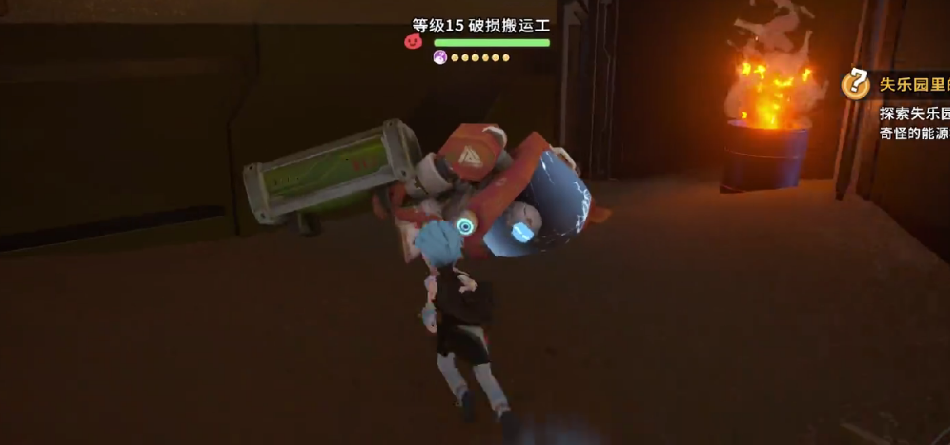 抵达第三层后,正对视野中央即为红色仓库。门前由破烂搬运工驻守,该单位具备固定巡逻路径与较高血量,无法绕行或潜入。建议战斗前确认药剂储备充足,武器耐久度及附魔状态良好;若角色等级达到28级以上,其虽不会主动追击,但仍需彻底击败方可通行。清除该敌人后,即可进入仓库内部。