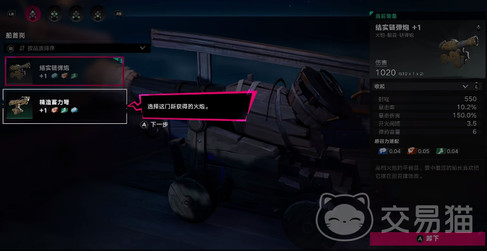 武器更换流程简洁直观:进入“岗位装配”界面后,定位船首区域(结实链弹炮默认安装位),点击当前装备即可触发替换选项。系统将即时列出全部已拥有武器,包括通过战斗获得的精造蓄力弩等进阶型号。玩家可依据当前海域威胁类型与战术偏好,自由切换适配武器,动态优化舰船作战效能。