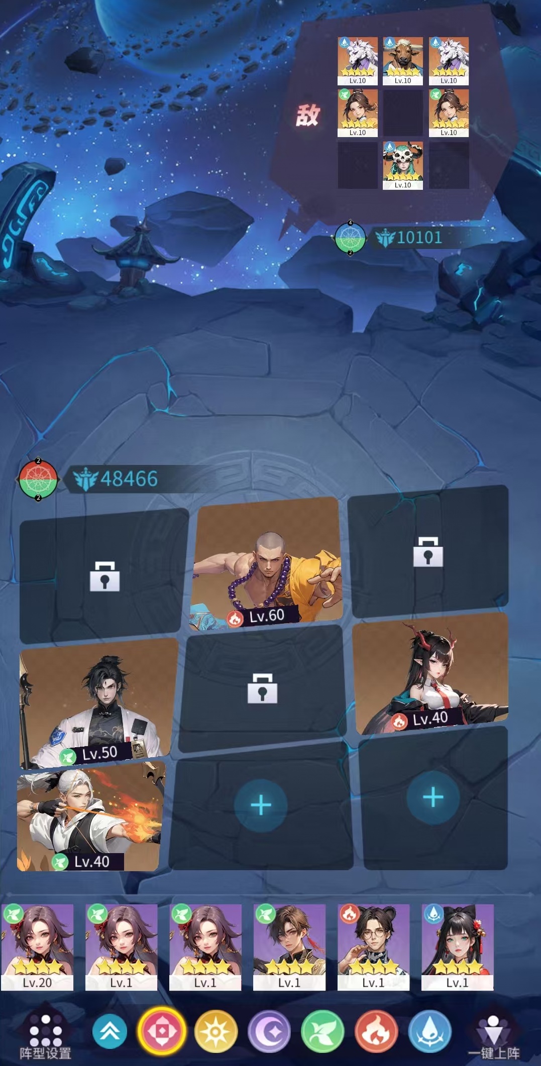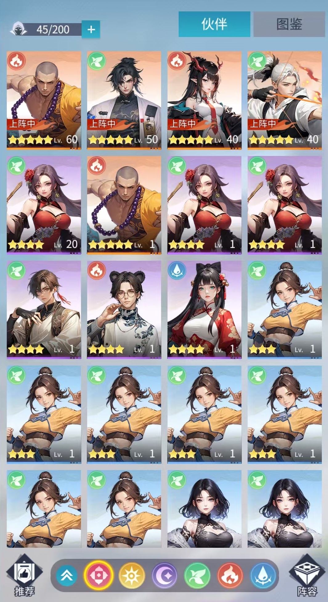 战斗系统基于自动回合制框架,深度嵌入五行相生相克机制,并划分五大阵营体系。角色属性中速度值为核心变量,直接影响出手序列;怒气积满后可触发专属大招。阵容配置强调策略维度——包括羁绊加成、连携技联动、职业职能互补及属性克制关系。尤其在高难度副本中,合理利用阵营克制与羁绊协同,远比单纯堆叠战力更为高效。养成路径延续卡牌品类成熟模型,支持升级、升星、觉醒等多维成长方式;辅以全自动挂机功能,支持快速作战与离线收益结算,确保资源稳定获取。