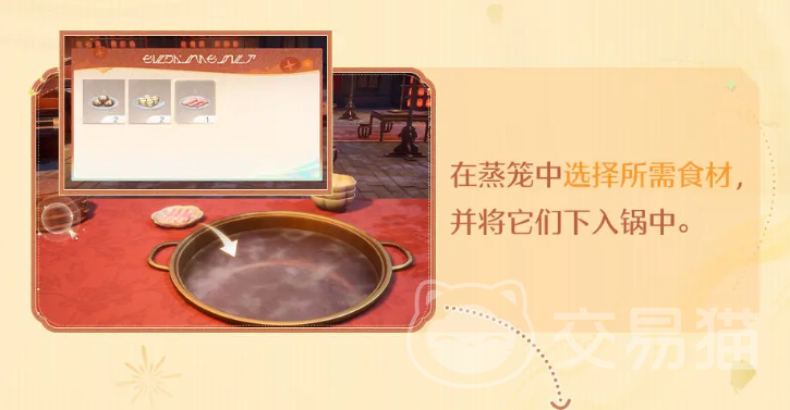 使用专属火锅勺搅拌可加快熟成效率。根据顾客实时订单,精准盛装对应菜品并完成递送,即视为单次服务成功。开业后支持自定义锅底类型与菜系风格。备膳环节必须选用万相境限定的新鲜食材,其流通货币为“万相通宝”——该货币不仅服务于火锅坊采购,亦可在万相境其他娱乐模块中通用。食材可通过菜摊师傅处兑换获取。