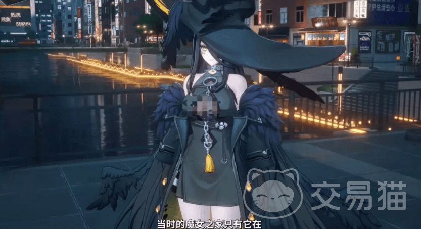 角色整体视觉语言高度统一:通体采用深黑色调,头戴复古女巫帽,肩颈处装饰鸦羽纹样;颈部佩戴一枚悬浮式异瞳挂饰,强化其不可测的灵能属性;胸前垂落金属锁链,双足佩戴断裂镣铐——这些细节并非单纯装饰,而是与其背景故事深度绑定的关键符号,暗示其曾受禁锢却挣脱束缚的过往,也侧面印证其高阶战斗素养。