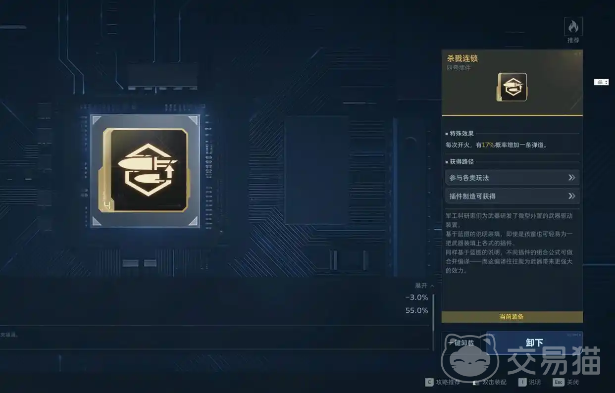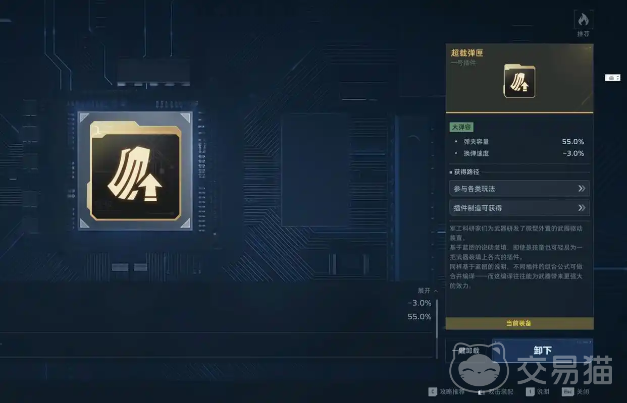 合理搭配插件是释放该武器潜力的核心路径。首推插件“超载弹夹”:提升弹匣容量80%,使单次装填从38发增至69发,显著延长持续输出时间,避免频繁中断射击节奏。若暂未获取该插件,可选用“充能弹药”作为过渡方案——释放主动技能后自动恢复全部子弹,实现技能与火力的无缝衔接。