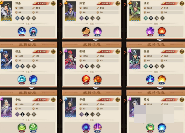 阵容配置建议以郭嘉、程昱作为核心输出位,优先提升至黄色二星品质以保障法伤强度;华佗担任唯一治疗位,需同步强化星级以维持队伍续航;其余三席可在徐庶、李儒等谋士中灵活补足,目标仅需满足羁绊解锁条件即可,无需过度投入资源。该起手组合成型迅速,后续扩展性强,眩晕控制触发率高,能有效打断敌方关键技能释放。此外,该阵容还具备50%概率触发额外增益效果。
