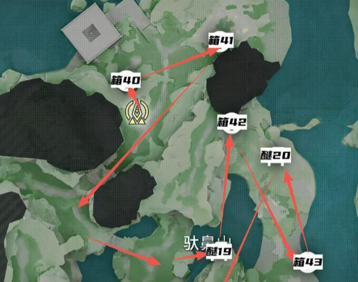 驮鼻山是武陵城宝箱密度最高的区域之一,总计醚质20处、宝箱44个。受山地地貌影响,大量宝箱设置于高台、峭壁平台或斜坡顶部,需借助地形跃升、阶梯攀援或悬浮平台转移等方式抵达。