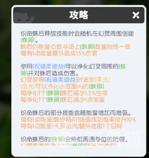 织命蛛后属于高动态压力型首领,核心机制为“未及时进化即崩盘”。战斗中持续生成蛛卵,既提升自身伤害,又施加控制效果,显著削弱我方防御能力。随着层数提升,蛛卵若未被及时清除,将导致推进中断。唯一清除手段依赖祝福类增益效果。因此阵容需围绕士气类Buff构建:英雄导师与烈焰魔女均可稳定附加士气增益;远古魔像提供的斗志效果可显著延长队伍续航时间;进阶选择智慧女神可进一步强化斗志效果,大幅提升抗压能力与生存阈值,为持续作战提供坚实保障。