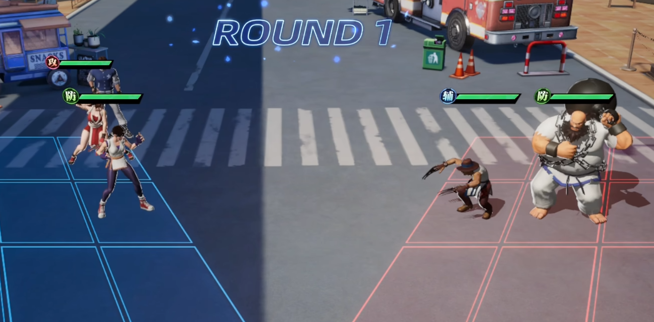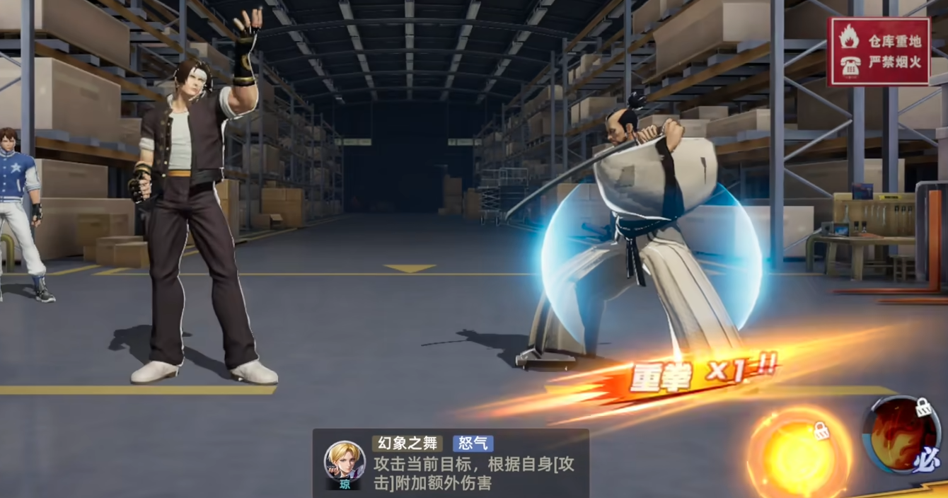 目前开放的核心联机模式为3v3车轮战,支持多人实时匹配对战。每局中,玩家可自由配置三名出战角色,例如草薙京、不知火舞等经典格斗家。值得注意的是,双方角色选择在开局前互不可见,因此战术安排更依赖临场判断与阵容协同能力。