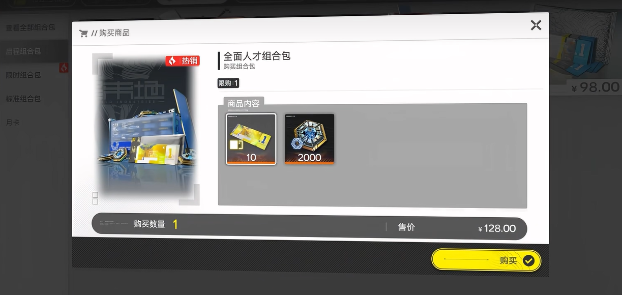 希望适度提升角色强度与抽卡频率的微氪玩家,可在月卡基础上补充两类高转化率礼包:其一是128元礼包,内含10连抽券及2000点武器配额(等效于武器池10次抽取);其二是6元首充礼包,提供6个源石与1件武器。两项合计新增投入134元,使整体预算控制在298元以内。需注意:1个源石可兑换75玉,而单次抽卡固定消耗500玉,因此上述礼包所赠资源均具备明确且可观的抽卡价值支撑。
