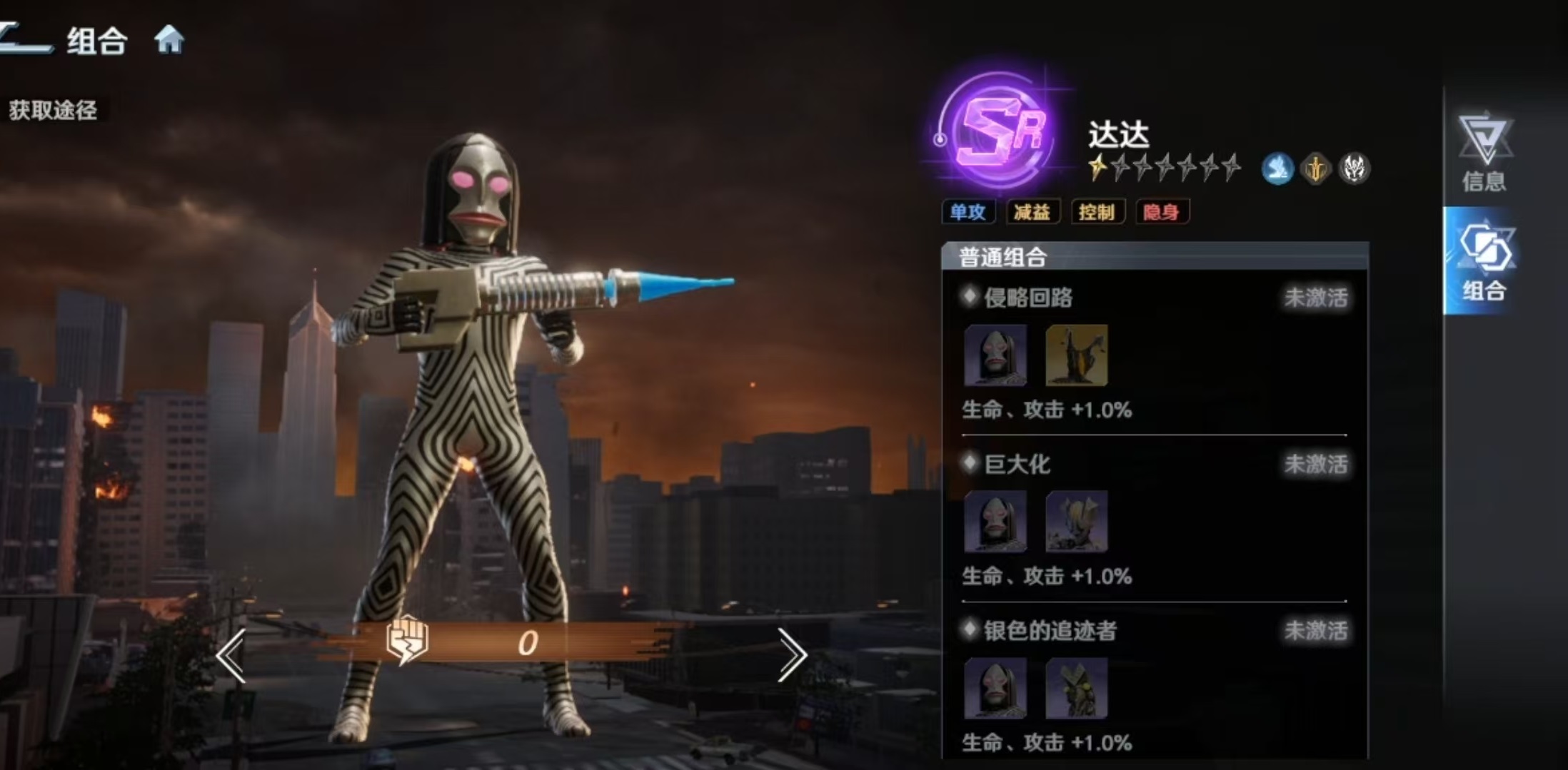 在阵容协同方面,达达与金古桥存在显著机制互补性:金古桥的技能常可触发或延长隐身效果,而达达的“瞄准”又能强化金古桥后续输出的命中与爆发。若再搭配一名具备稳定群体伤害的主C角色,即可在游戏前期以全SR配置达成高效清场。不过需注意,达达自身成长曲线平缓,组合增益幅度有限,中后期建议逐步过渡至更高稀有度或机制更全面的角色替代。