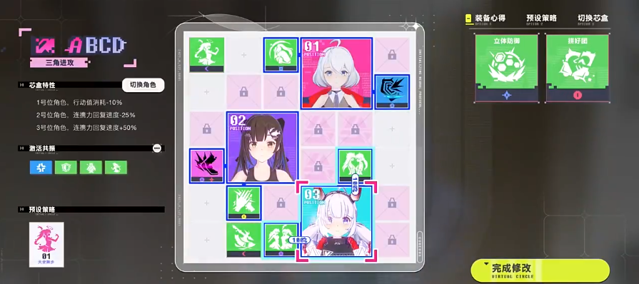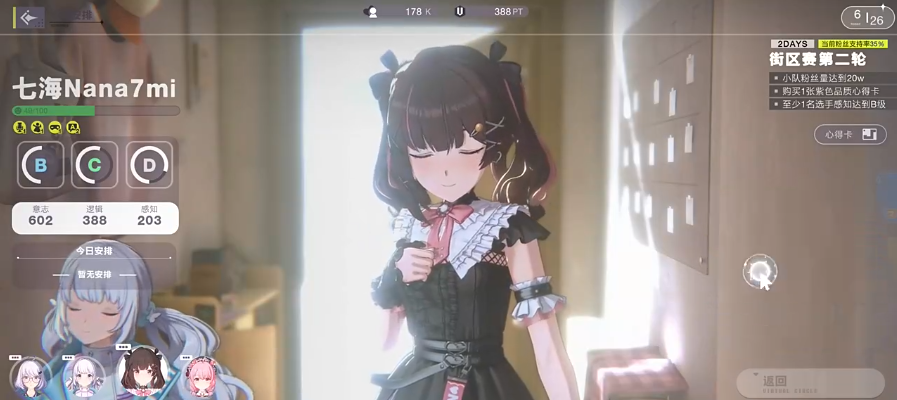 整个联赛流程划分为备战与对战两大阶段。备战阶段支持深度角色配置:每位角色拥有四项关键属性——意志、逻辑、感知及粉丝数量。其中,意志值影响角色在战斗中受“定心得卡”加成后的实际生效强度;逻辑值反映角色与V-Type战斗机体之间的协同适配度;感知值决定队伍可装配的“芯盒心得卡”上限,并关联芯盒等级成长空间;粉丝数量则直接转化为整支参赛队伍的生命值总量。此外,状态栏实时显示角色间互动关系,触发的临时增益效果将显著左右战局走向。