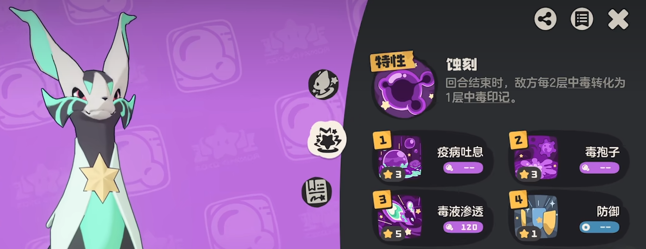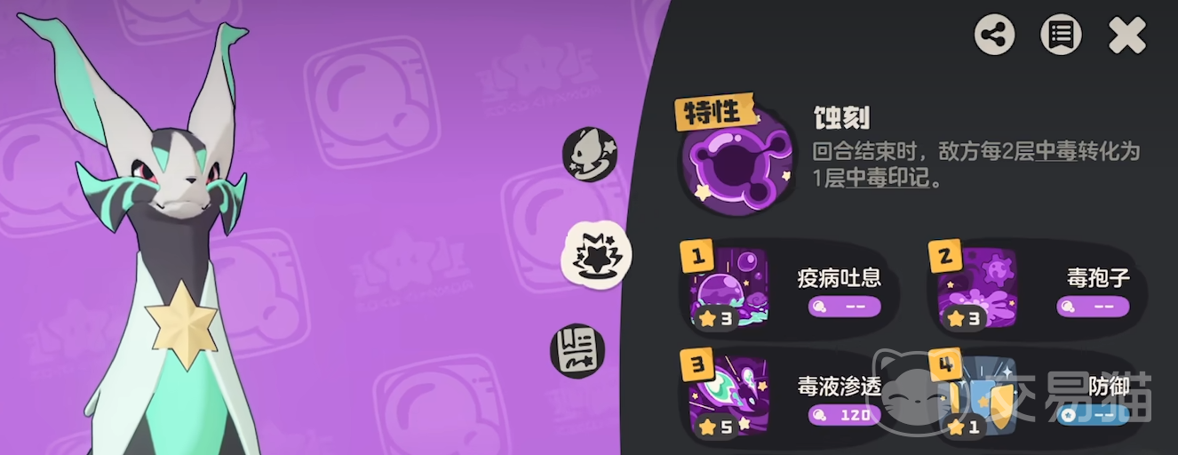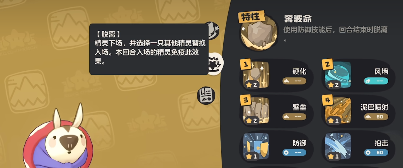 奔波鼠在阵容中承担战术衔接职能,其特性可在成功发动防御类技能时,使自身免疫下一次攻击类技能效果。这意味着当敌方使用倾泻等清除类技能命中其防御动作时,无法正常消除我方已叠加的毒印记,从而维持中毒压制链的完整性。因此,为其配备风墙技能是保障其功能实现的关键操作,释放防御技后即可及时换下。
