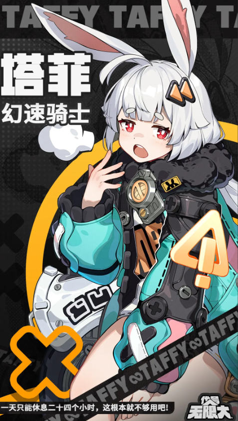 塔菲拥有标志性的白发、赤红色双瞳与 oversized 兔耳,面部常呈现慵懒微倦神态,整体形象兼具反差感与亲和力。她隶属混厄对策局,职级为初级调查员,职业理想是通过考核调入核心部门——特异科。