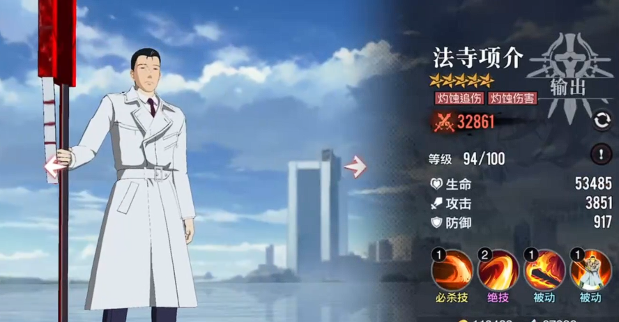 第二位是项介。该角色定位为高成长性副输出,技能组围绕“灼热”状态构建:基础技能可对周围敌人施加持续灼烧伤害,并随战斗回合数自动叠加层数,越到中后期伤害增幅越显著。作为燃烧流派体系中的核心驱动者,其养成门槛低、资源消耗少,搭配火属性增伤类辅助即可快速发挥战术价值。