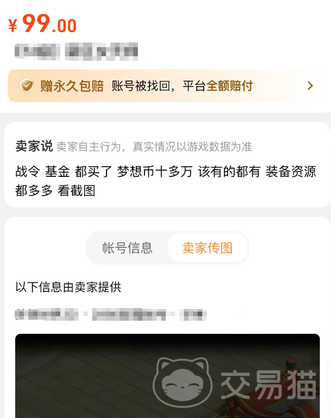 在安全性方面,交易猫也是很有保障的,它背靠阿里巴巴灵犀互娱,强大的企业背景也是能够为其提供一定的安全支撑,而且它在当下行业内也是有着全场账号永久包赔的服务,这在一众游戏交易领域都是非常罕见的。如果我们在购买游戏账号的过程中出现被恶意找回的情况,只需要寻找平台客服进行索赔,即可快速启动退款流程,让我们没有后顾之忧,而且买号之前,平台客服也会为我们提供验号的服务,这也进一步增强了账号交易的可信度。