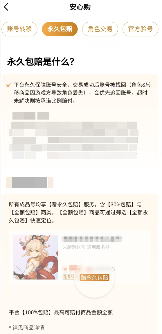 cf比较好的一些账号价值随随便便都能过万,哪怕就算里面只有一把传说武器,它的单品价值就已经过千,而为了能够让整个交易变得更加安全,交易猫推出的安心购远远领先于业内其他的平台,光是成品号赠送永久包赔这一点,至今就没有平台能够做到,发生问题第一件事情就是先赔付客户款项,并且在购买之际还可以选择附加额外保险,如发现找回问题还会有赔付。