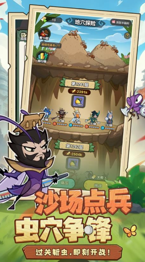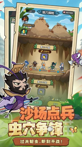 虽以放置为核心机制,但策略深度不容忽视。核心玩法围绕昆虫化武将(虫将)的阵容构建展开,涵盖兵种相克逻辑、前中后排布阵逻辑及羁绊系统联动。开局即赠三大特色角色:铁甲蟋蟀张飞(高生存,前排承伤)、赤焰螳螂关羽(均衡输出,开荒主力)、幻影蝶诸葛亮(技能协同型,适配战术流)。合理配置站位、激活羁绊加成、组合连携技,平民玩家亦能凭借思路打出高爆发表现。多种成型流派可供探索,逐步打磨专属作战体系。