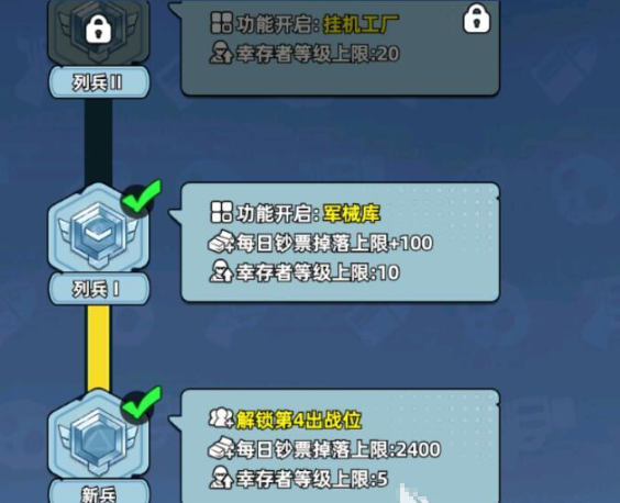工厂解锁后即自动运行,即使玩家处于离线状态,也会持续产出基础资源,如罐头和士兵识别牌。但需注意:所有产出资源均不会自动进入背包,必须由玩家主动点击主页的“挂机工厂”按钮进行领取。若长期未领取,仓库达到容量上限后,新增产出将被临时锁定,无法继续累积。