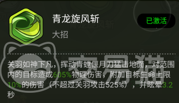 关羽:神话品质伙伴,外观设计突出“武圣”气韵,头戴金色雉羽冠饰,视觉辨识度极高。主动技能“青龙旋转风”具备高倍率伤害与强制击退效果,适用于PVP竞技场及高难度副本攻坚。天赋系统分三层:首层“血刃回春”强化前排生存能力,在高强度战斗中提供关键续航;第二层“武圣之威”直接提升核心技能输出效率;第三层“蝉影幻袭”则拓展战术维度,支持多线操作与节奏切换。
