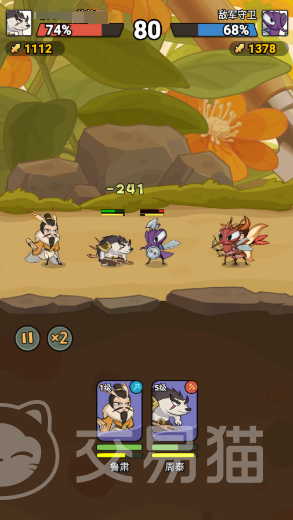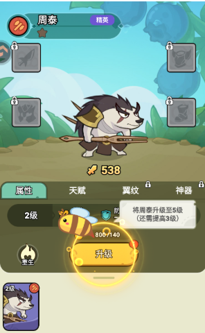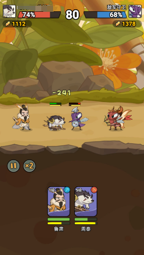 周泰担任前排坦系核心,拥有极强的承伤能力。角色等级达到2级时,即可有效抵御BOSS三连击;升至5级后,背部尖刺触发反伤机制,可反弹约50%所受伤害。实战中将其置于阵型最前端,可最大限度吸收敌方火力,为关羽创造安全输出环境,也为鲁肃争取施法空间。在主线1-6所有通关战役中,周泰均展现出优异的站桩稳定性——即使血量降至最低限值,亦不会脱离战斗位置,充分印证其作为阵容基石的价值。