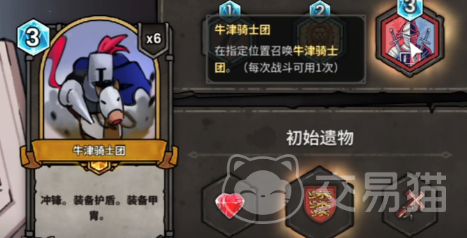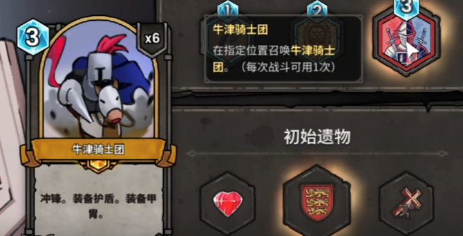 第二回合骑兵卡牌就位后,立即调整阵型:骑兵前置冲锋,弓箭手后置补刀。第三回合果断打出“牛津骑士团”,依靠其高额单体伤害完成关键斩杀,并同步解锁“巨鹰”与“用兵术”两张关键卡牌。“用兵术”可对全部手牌施加强化,但当前卡组缺乏群体清场手段,因此优先选取“巨鹰”——其范围攻击特性在应对杂兵群时效率突出。随后推进至实验室区域,触发问号事件获得“哥布林存款”。此时以轻骑兵开路突进,辅以小步兵填补阵型空缺,迅速瓦解敌方前排防线。