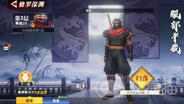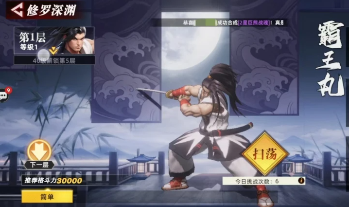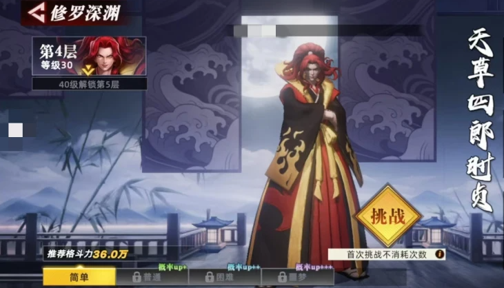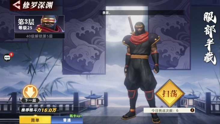 修罗深渊入口位于主地图中的MPC标识处,点击即可开启挑战。整个副本共设多层结构,每层均配备专属BOSS,且难度随层数递增呈稳定上升趋势。具体配置如下:第1层与第2层守关者均为霸王丸;第3层为服部半藏;第4层为天草四郎时珍;第5层起需角色等级达到50级方可解锁;更高层数则设有对应等级或战力门槛。挑战次数方面,首次进入不消耗当日挑战额度,之后每日拥有固定次数,建议规划好阵容与资源后再发起挑战,避免无效尝试。