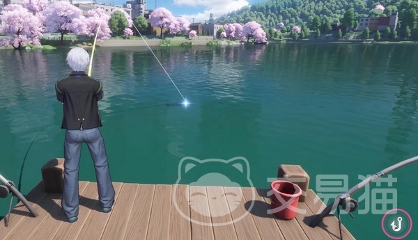游戏中,钓鱼点位分布在各类大型水域周边,玩家靠近后可见固定钓台,包含水桶与钓竿等交互道具。触发操作后,系统将进入手动抛竿流程。