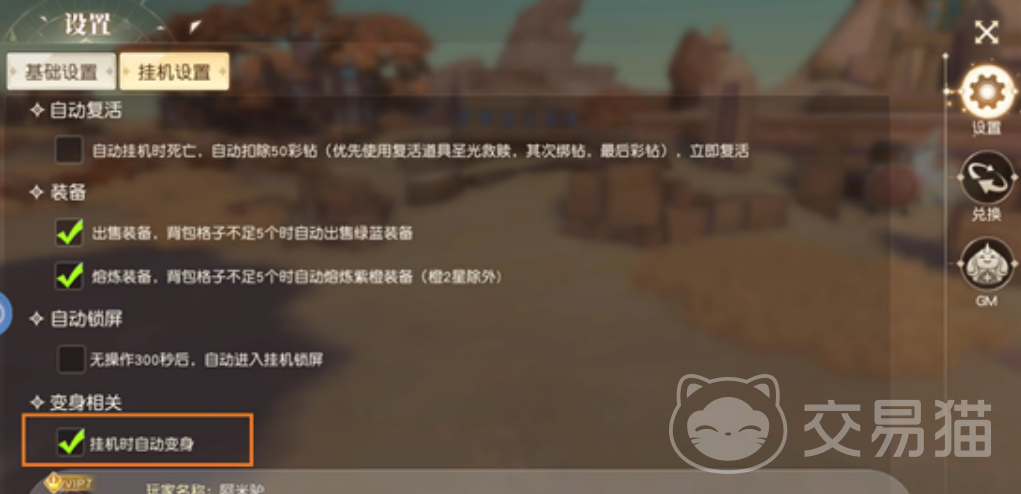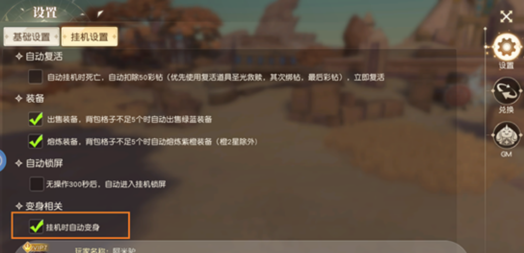 天神系统的入口位于游戏主界面右下角,图标醒目,点击即可进入专属面板。需特别注意:挂机状态下天神变身默认处于关闭状态,不会自动触发。如需实现全自动作战,须手动进入【设置】→【挂机配置】,开启“挂机时自动变身”选项。同时建议同步启用“自动复活”与“装备自动处理”功能。后者具备智能识别逻辑——当背包剩余空格不足5格时,系统将自动分解绿色与蓝色品质装备,避免因背包满载中断刷图流程,保障日常产出节奏稳定。