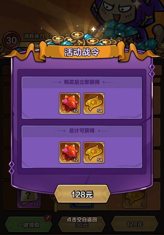 活动战令与对应活动卡池同步开启与关闭,不跨期延续。当前活动卡池分为时装卡池和宠物卡池两类,分别提供角色专属时装与专属宠物,且均绑定独立的抽卡资源。战令共设三档:免费档(无需付费)、高级奖励档(售价30)与豪华奖励档(售价128)。三档之间互不包含——购买豪华档不会自动解锁高级档内容,玩家仅可领取所购档位及免费档中的全部奖励。战令等级通过消耗体力获取积分提升,每升一级即可解锁对应奖励。