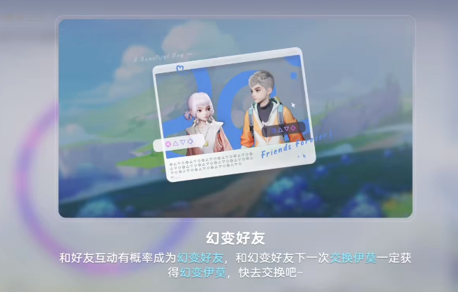 “伊莫幻变”并非传统意义上的装备强化或等级突破,而是一种基于角色亲密度触发的状态跃迁机制。玩家在探索地图、参与战斗前,可自由选定初始角色;通过持续对话、喂食、共同行动等轻量交互行为,角色将逐步积累幻变能量。一旦触发,宠物外观将呈现流光溢彩的视觉效果,名称亦以动态彩色字体呈现。更重要的是,该状态直接带来基础体力值提升,并推动角色品质由普通升至稀有,甚至史诗层级——整个过程不依赖任何消耗性道具,也无需繁琐的数值堆叠,仅靠日常陪伴即可实现质变。