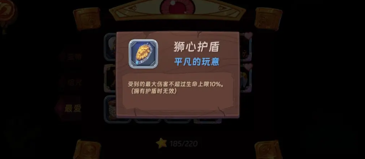 狮心护盾的觉醒效果为:角色所受单次伤害上限恒定为当前生命值上限的10%。该机制显著提升容错率,尤其适用于前期资源有限、操作尚不熟练的阶段。三根彩色羽毛则在每次进入新地图首层时,使全属性(含攻击力、防御力、移速等)永久提升至原值的1.1倍,在无尽模式中具备持续滚雪球优势;同时,该宝物与角色“天才水豚”的初始技能存在协同关系——其属性成长曲线可有效抵消该角色自带宝物升级导致的属性衰减。