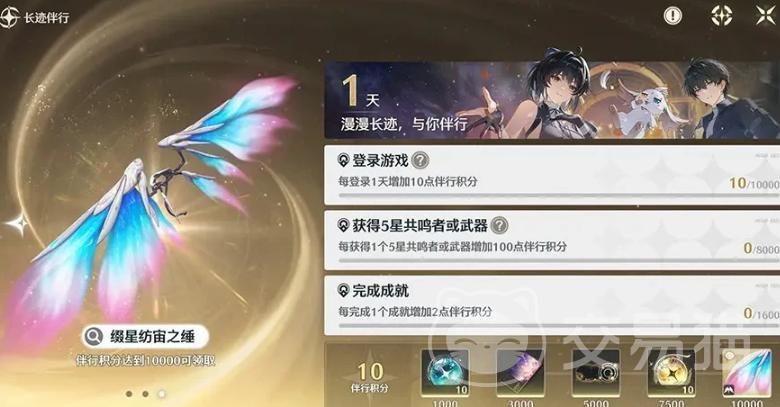 【长迹伴行】为长期成长型回馈系统。玩家通过完成伴行任务积累积分,达成指定档位后可兑换包括10次常驻抽取、新印章、限定称号、10次限定抽取及典藏级滑翔翼皮肤在内的多项奖励。值得注意的是,获取5星角色的回音频段与5星武器均计入积分体系。后续版本中,该系统将持续扩展可兑换礼品范围,并同步提升积分上限。