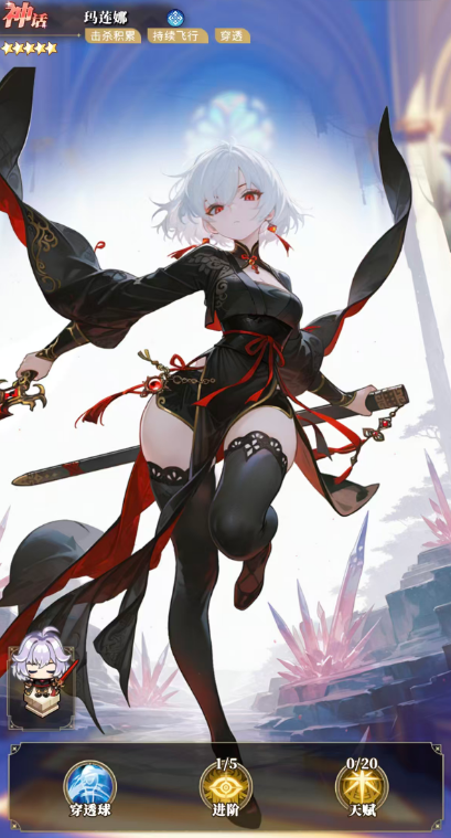 玛莲娜:典型成长型穿透输出角色。通过击杀层数叠加,逐步解锁高阶战斗效能。拥有持续飞行能力及多段弹射机制,每完成一次穿透,即可提升10%弹射伤害,最高可达100%。五阶进阶后,弹球伤害提升60%,弹球数量+2;使用风刃技能击杀敌人时,可获得耐久时间+1秒的增益,该效果随击杀数累积,最多叠加至+5秒。终期升阶满额后,相关系数可提升至200%,使其在中后期具备极强的节奏掌控力。