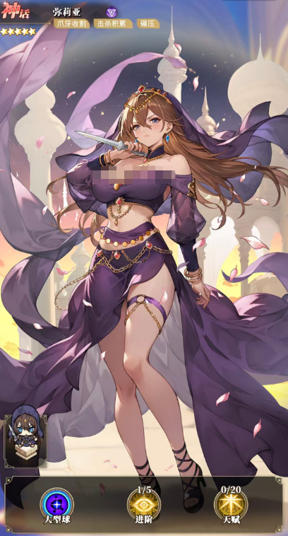 黛梦:团队生存向神话角色,兼具治疗与功能性驱散。作为大型弹球单位,每次撞击边界时会释放环形波浪,为全队提供持续10秒的生命恢复效果,该效果最多叠加5层。进阶至五阶后,弹球伤害提升30%,自身耐久次数+1,持续治疗保留,并新增“每次治疗生效时驱散目标1个负面状态”的被动。若进一步突破至六阶,则额外获得弹球伤害+20%的增益。整体而言,其个体输出能力偏弱,但团队辅助价值突出,尤其适合长线作战阵容。