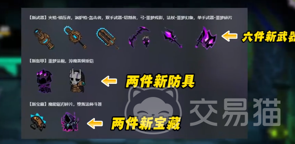 宝藏系统同步升级,新增堕落法师法袍与魔能巨刃碎片两件关键物品。其中堕落法师法袍属诅咒类宝藏,虽附带负面效果,但可与恶魔法袍形成协同组合,激活多元素混伤体系,大幅提升爆发输出效率,是应对高难度副本的核心配装方案之一。炼金材料库亦扩充内容,新增黑色灵魂石等关键资源,用于高级配方合成与属性强化。