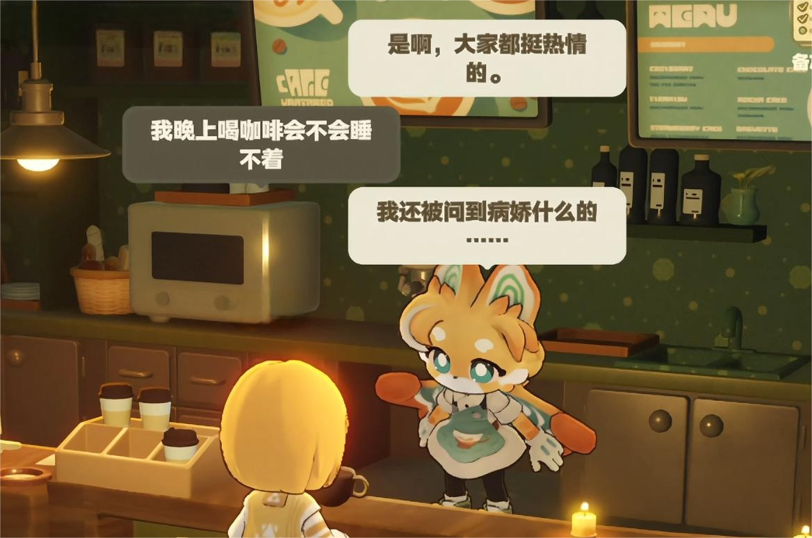 要与娜洛正式结识,需先完成岛民成长路径,达到“资深岛民”等级后方可解锁咖啡馆访问权限。进入店内,即可看到这位身着围裙、举止亲切的猫兽人老板娘在吧台后忙碌穿梭。她不仅会主动问候、倾听玩家心声,还能就天气、节日、个人近况等话题展开延展式对话,赋予每位玩家专属的社交体验。