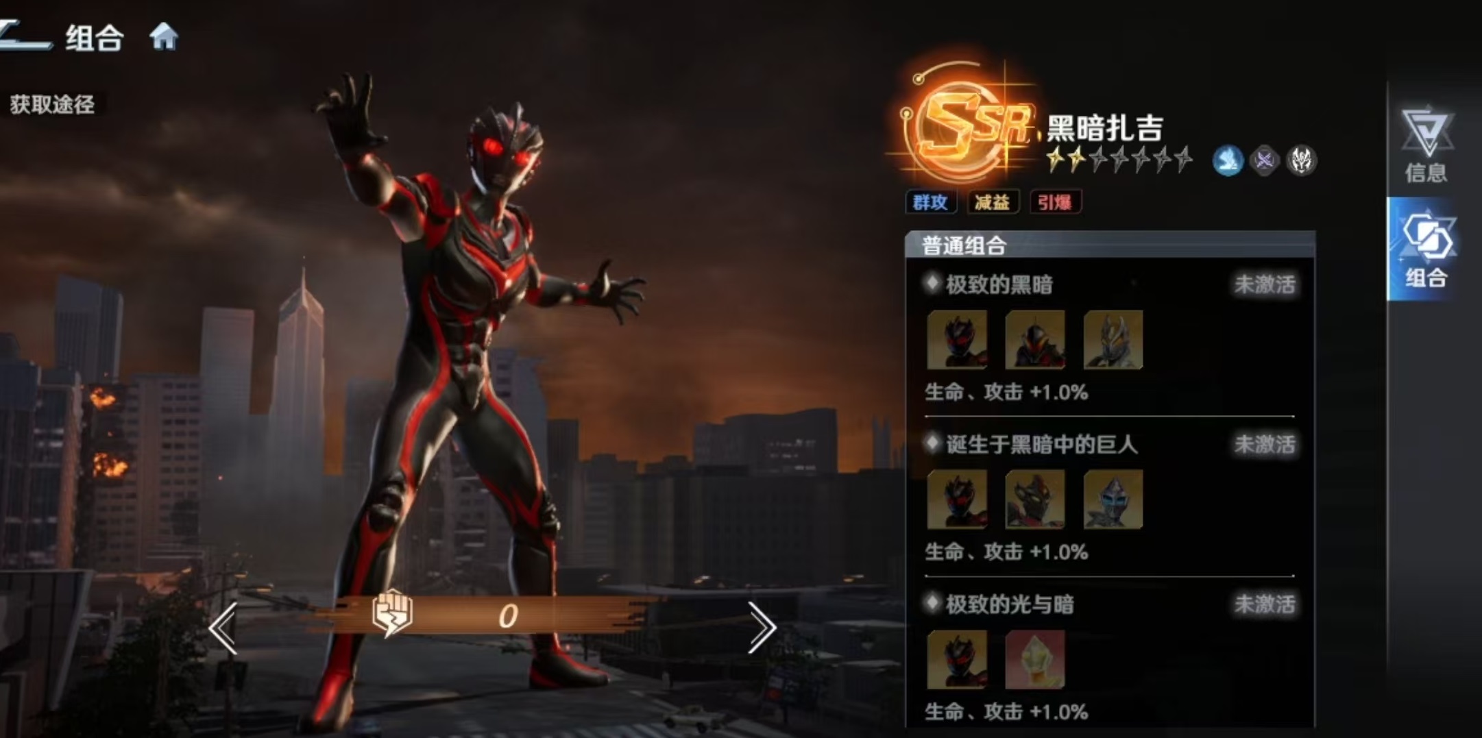 基于上述机制,黑暗扎吉天然契合持续伤害协同体系。推荐搭配角色包括:具备燃烧状态的强力型迪迦奥特曼、拥有高频率灼烧能力的达拉姆、能强化持续伤害效果的芝盾,以及兼具辅助与控场能力的卡蜜拉。此类组合可最大化触发被动频率,延长状态链,构建稳定高效的AOE压制循环。