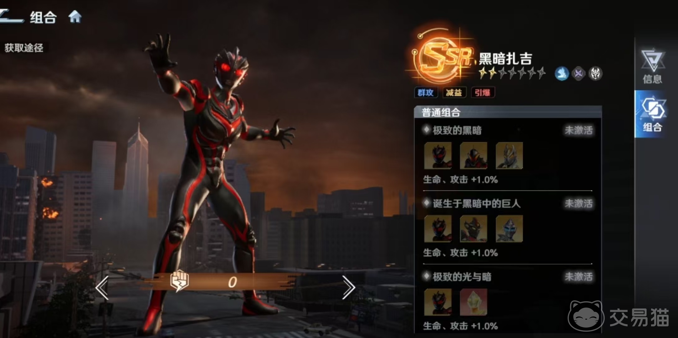 本期为大家深度解析《奥特曼:光之战士》中高人气SSR角色——黑暗扎吉(官方译名,非“黑暗扎古”)。该角色以黑红双色主调塑造出极具视觉张力的战甲造型,整体设计突出压迫感与神秘气质,在当前版本中稳居强度梯队顶端。作为核心输出型角色,其技能机制围绕“黑暗涌动”这一不可驱散的异常状态展开,具备极强的战术延展性与团队适配性。