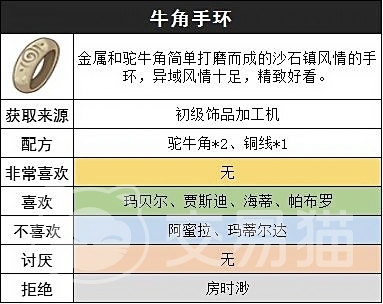 配方藏匿于沙石镇一处特殊地点——售卖动物的房屋顶部。该位置需玩家主动攀爬抵达,屋顶存在一个隐蔽宝箱,开启后即可直接获取牛角手环的完整制作蓝图。此设计鼓励探索行为,也提升了前期信息搜集的沉浸感。
