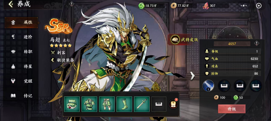 输出端首选马超。该角色易获取、成型快,基础技能对范围内敌人造成200%攻击力伤害。随着战斗深入,其被动效果逐渐显现:对气血低于25%的目标提升35%伤害;成功击杀后,自身恢复35%最大生命值。强化后,单次技能可打出200%物理伤害;若击杀触发连招,则第二段技能伤害可达440%攻击力。这一特性使其在推图与副本攻坚中表现尤为突出,是平民玩家构建主力输出体系的理想选择。