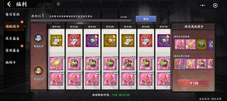 战令分为普通与高级两种,后者需额外购买,价格较高。普通战令已涵盖绝大多数核心养成资源。战令点可通过每日活跃任务、周常宝箱稳定获取。若因故错过某期奖励,系统将在活动重置前通过邮件补发。特别提示:在战令停更前四天,玩家可使用积攒的古玉直接提升战令等级,每升1级消耗50古玉,确保不遗漏关键节点奖励。