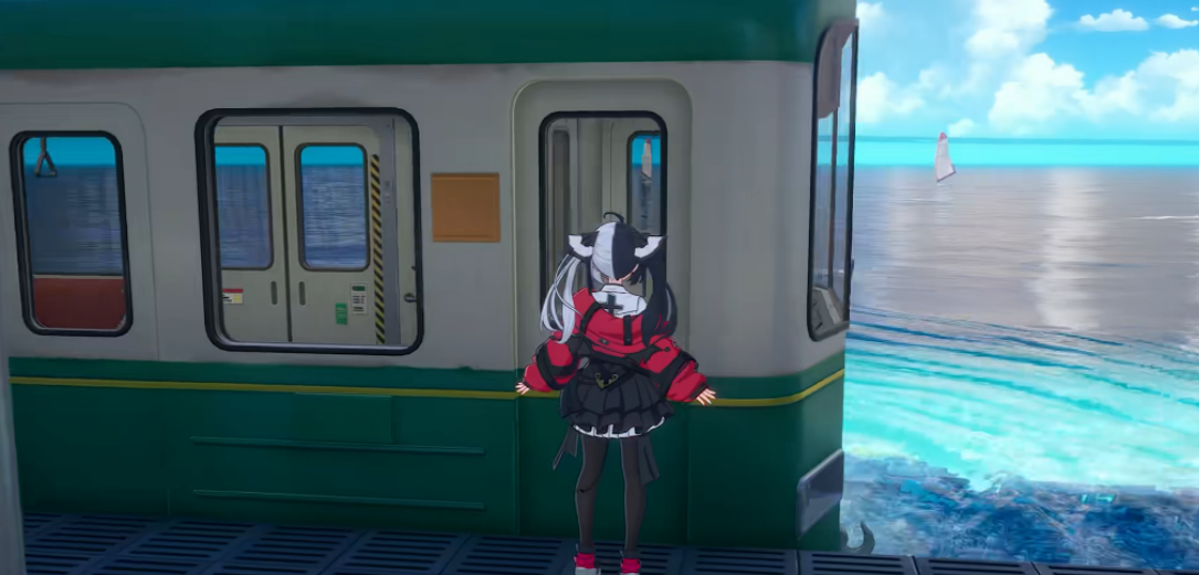水上列车是贯穿水域网络的关键交通节点。玩家可在沿岸指定站点候车,列车采用复古机械结构融合未来流线造型,车厢内部设有观景窗与模块化座椅布局。乘行过程中支持自由切换视角:默认坐姿适配日常通勤,亦可攀至车顶获得全景视野。列车沿线配置多名常驻NPC,主动对话可能触发支线剧情或世界观补充文本,增强叙事纵深感。