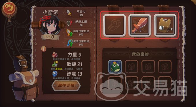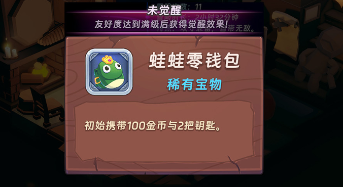 宝物系统具备高度泛用性:每名角色可携带一件专属宝物上场,且该宝物可通过占卜功能跨角色装配。例如小斯诺的专属宝物“保护娃娃零钱包”,作为稀有品质道具,可在开局即赋予角色100金币与两把钥匙,无角色绑定限制,适用于全阵容通用配置,显著提升前期资源容错率与探索自由度。