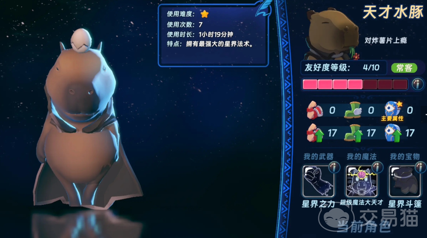 第三位为天才水豚。作为零门槛获取角色,其普攻自带三重追踪法术,命中判定稳定,适配高密度敌群环境。当装备激光炮、流星雨等范围型法术宝物后,其AOE覆盖率与爆发潜力大幅提升。操作要点在于:激光炮自动朝向最近敌人,普攻具备智能锁定功能;完成两次普攻后,印记层数开始生效,后续大招将根据印记数量重复释放,实现多段技能输出。该角色的成长曲线平滑,中后期配合印记类增益宝物,可达成持续高频的群体压制效果。