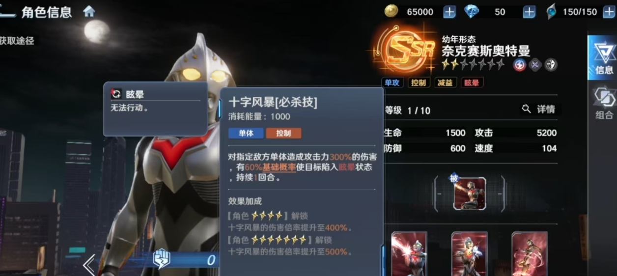 奈克赛斯奥特曼的核心强度来源于技能机制与控制逻辑的高度协同。其被动效果在战斗初始即提升全部技能的效果命中率,为后续连续触发眩晕、僵直等控制状态提供稳定数值支撑。该机制使他在对抗高韧性目标时具备显著压制优势,尤其在释放必杀技“十字风暴”时,可凭借超高概率的眩晕判定强行中断敌方关键技能释放节奏,形成实质性行动权压制。