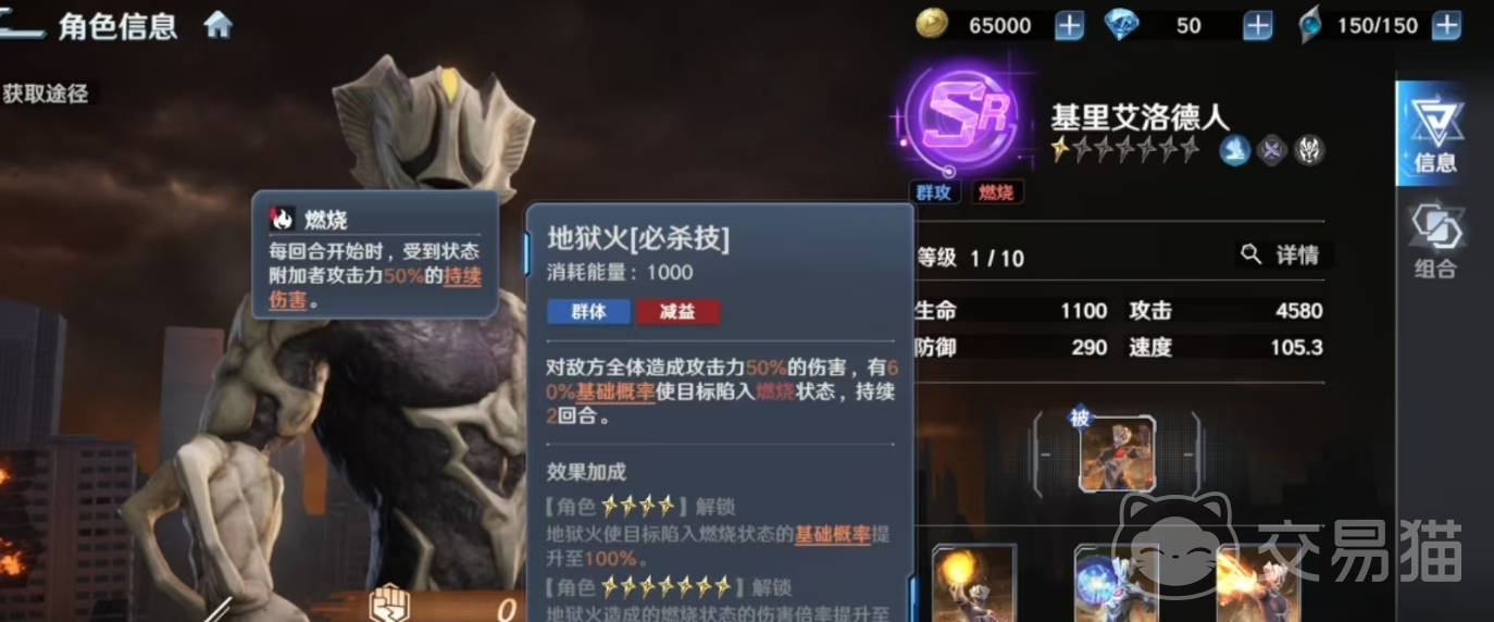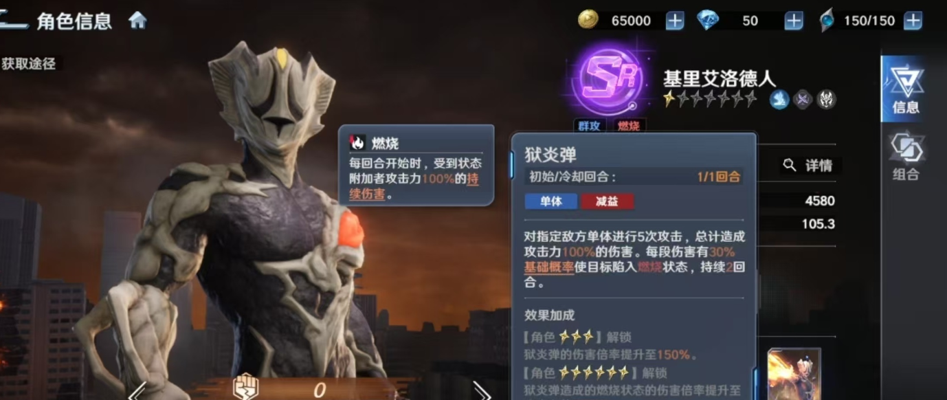基里艾洛德人的战斗体系以群体压制与多段异常叠加为底层逻辑。其被动技能“精神生命体”在战斗初始即提供20%效果命中率加成,显著提升控制类技能的生效稳定性。该机制将基础命中率与燃烧状态触发深度耦合,并协同必杀技“地狱火”,对敌方全体施加持续性伤害判定,在清剿复数目标时展现出极高的战术优先级。