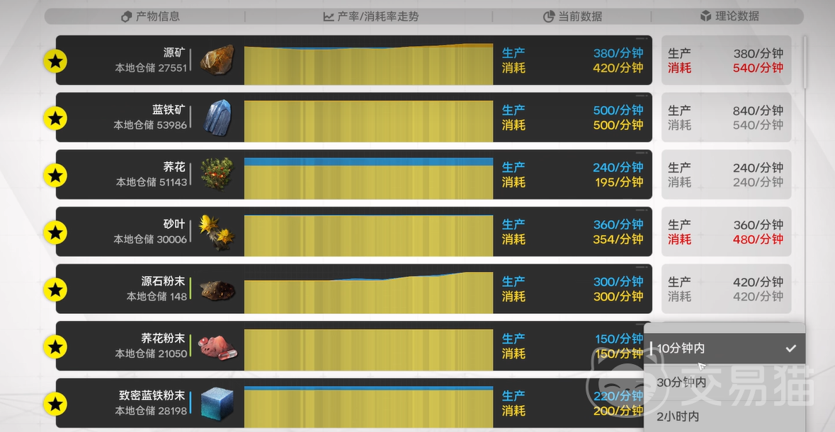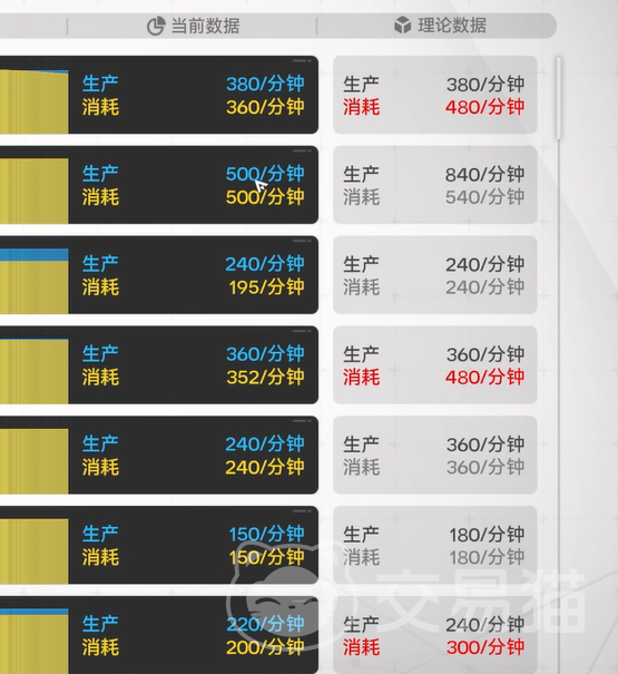 新建成的产线初始阶段常出现“生产量与消耗量均为零”的情况,这并非异常,而是系统数据采集存在约30–60秒的缓冲延迟。待数据刷新后,理论值将稳定显示为6,但当前值可能仅显示为3甚至更低。根本原因在于原料短缺:低熔电池合成需消耗5个紫金零件与10个原始粉末,两者消耗比为1:2。若仅配置单条原始粉末产线,其输出无法匹配紫金零件产线的供料节奏,导致合成设施因缺料而间歇停机,从而拉低实际产出。
